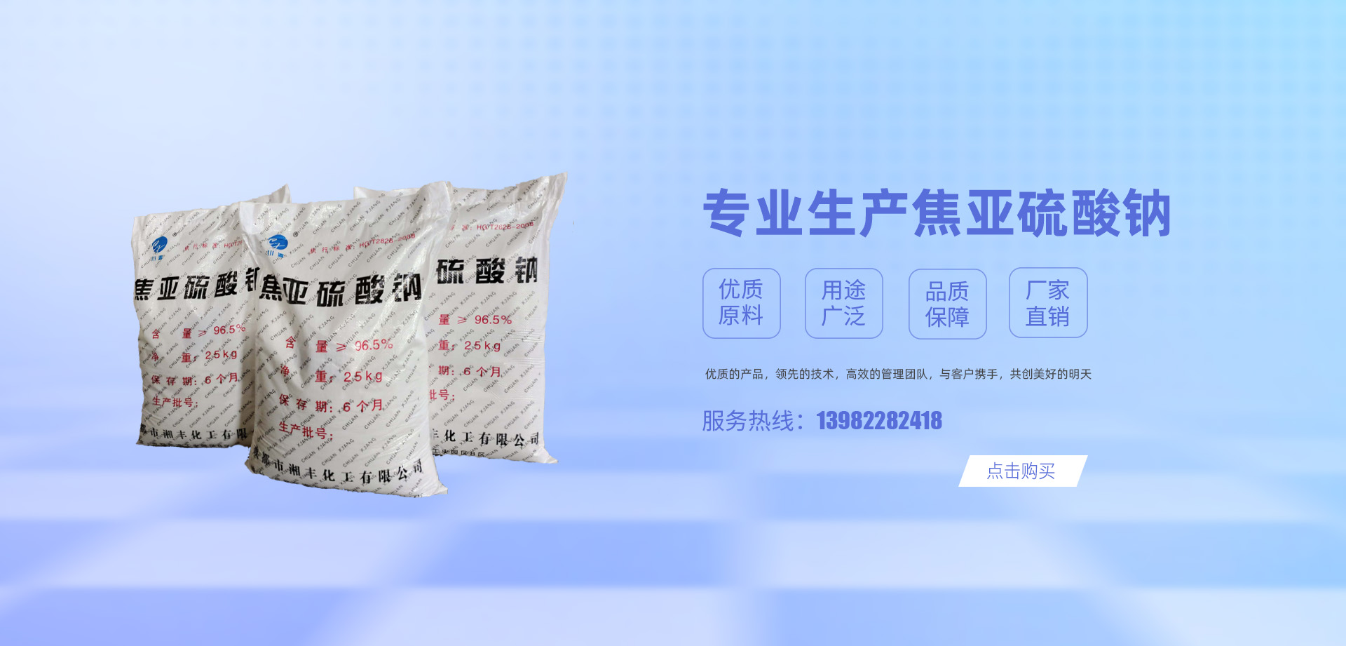 成都市湘豐化工有限公司座落在四川省成都市新津精細(xì)化工園中,占地10000多平方米,是一家有十幾年焦亞硫酸鈉生產(chǎn)經(jīng)驗(yàn)的企業(yè),設(shè)計(jì)年生產(chǎn)能力2萬(wàn)噸。 焦亞硫酸鈉又稱(chēng)二硫五氧酸鈉,重硫氧,有著廣泛的用途:在醫(yī)藥工業(yè)中用于生產(chǎn)氯仿、苯丙砜和苯甲醛;橡膠工業(yè)用做凝固劑;印染工業(yè)用作棉布漂白后的脫氯劑、棉布煮煉劑;制革工業(yè)用于皮革處理,能使皮革柔軟,豐滿、堅(jiān)韌,具有防水、抗折、耐磨等性能...